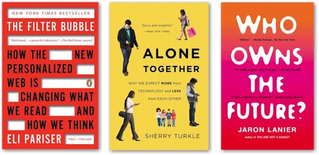 Alone Together, discusses how our constant connectivity through social media leads to a new form of social isolation. Finally, Pariser's, in his book
