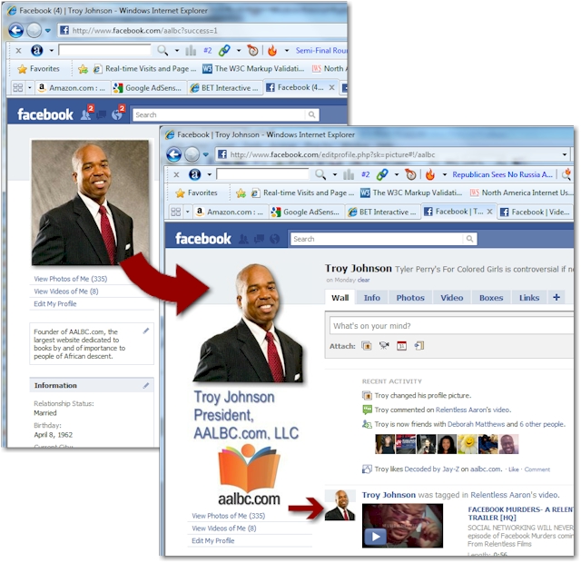 Facebook allows you to select a smaller area of the image to use as your avatar. In my case, I simply selected the area of the image containing my head shot on my profile page and my logo and URL on my Fan page.