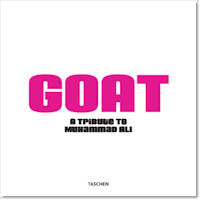 Four years in the making, and the most comprehensive look at Ali to date, GOAT tips the scales at 34 kgs (75 lbs) and is 50 cm x 50 cm (20" x 20") in size. 800 pages of archival and original photographs, graphic artwork and articles and essays - many of them previously unpublished - chronicle six decades of his life in stunning detail. To cap it all, the project takes place with the participation of Ali himself and those members of his inner circle who have been closest to him over the years: from managers and key ringside cornermen to friends, family and children; from spiritual and other advisers to broadcasters, essayists and journalists. Motivating this endeavor is the conviction that Ali is not just a figure from the past, but one whose influence pervades everyday popular culture, even now. A mere glance at the world of sports and music, for example, reveals his psychic DNA on everything from the lyrics and style of rap music to the way sports figures represent themselves. More significantly, his actions outside of the boxing ring still speak louder than the verbal outrageousness of his pre-fight spectacles. He is a man who stood by his convictions, took a highly unpopular stance at the peak of his career in a country not yet ready for radical change. He risked everything �his boxing license, livelihood, and tremendous popularity� and lost everything, and in the process began to emerge as a hero for all time. No stone has been left unturned in telling this remarkable story: the book features written contributions from hundreds of writers and photographers, as well as over 3,000 photographs of Ali's dazzling life. Plus Ali's own insights, writings and drawings, and reproductions of fight posters and classic memorabilia. After the enormous success of Helmut Newton's megabook, SUMO, publisher Benedikt Taschen felt that his next challenge lay in creating a work that had multiple sources and extraordinary photography, but one where the emphasis on the written word, narrative and research was on par with that of the most comprehensive literary biographies. In short, matching meticulously crafted prose with incredible color and black-and-white photography. In addition, new work �commissioned from artist Jeff Koons� gives the Ali mythology a twenty-first-century edge and an entirely contemporary context. GOAT will come in two versions: the "Champ's Edition", limited to the first 1,000 copies and featuring specially-commissioned artwork by Jeff Koons as well as four silver gelatin prints by Howard L. Bingham, signed by the photographer and Ali himself. The remaining 9,000 copies come with a photo-litho made by Jeff Koons. All 10,000 copies are individually signed by Muhammad Ali and Jeff Koons. |