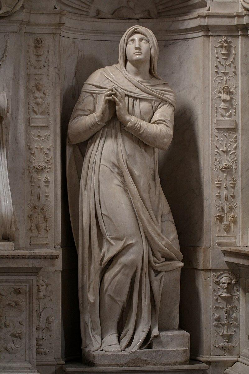 Rachel is a sculpture of the Old Testament figure Rachel. it was part of the final, 1542–1545 design for the tomb of Pope Julius II in San Pietro in Vincoli, on which it is present at the time this photo was taken.