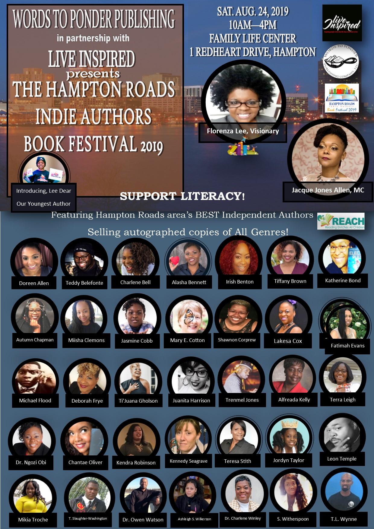Description: Words to Ponder Publishing Company, LLC and Live Inspired Present “The Hampton Roads Indie Author Book Festival and Fundraiser 2019”