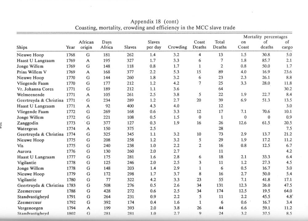 Appendix 18 above from the "Dutch Slave Trade " book by Postma above, gives an indication of the number of deaths to Africans