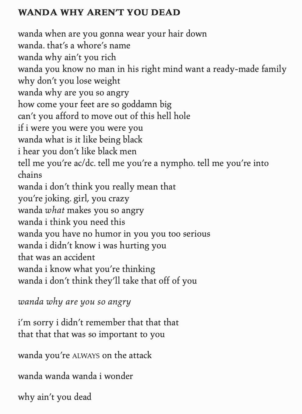 “Wanda Why Aren’t You Dead“